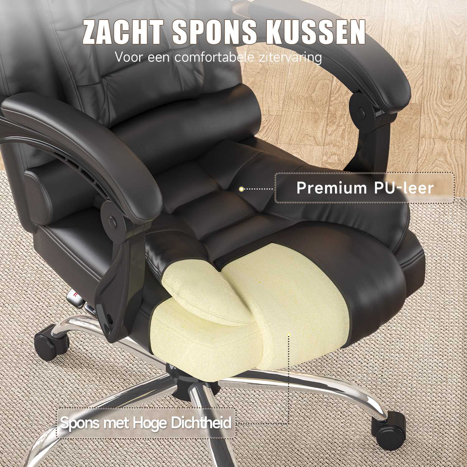 Gemaakt van hoogwaardig PU-leer, zorgt het voor een stijlvolle look die past bij uw huis of kantoor. De zitting, rugleuning en armleuningen zijn gevuld met schuim met hoge dichtheid, wat zorgt voor extra ontspanning en verlichting van vermoeidheid.